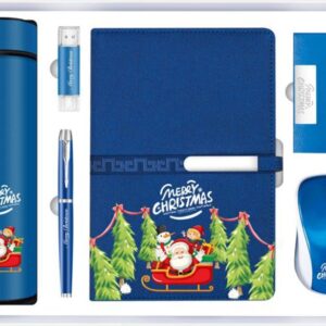 Vacuum cup + pen + USB flash drive + A5 notebook + name card holder + mouse Christmas gift set